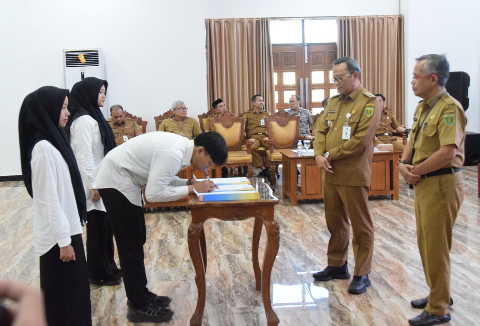 Penandatanganan pakta integritas yang disaksikan oleh Bupati Tabalong, HM Noor Rifani dan Kepala Disporapar Tabalong, Zulfan Noor. Foto: JM/lenterakalimantan.com