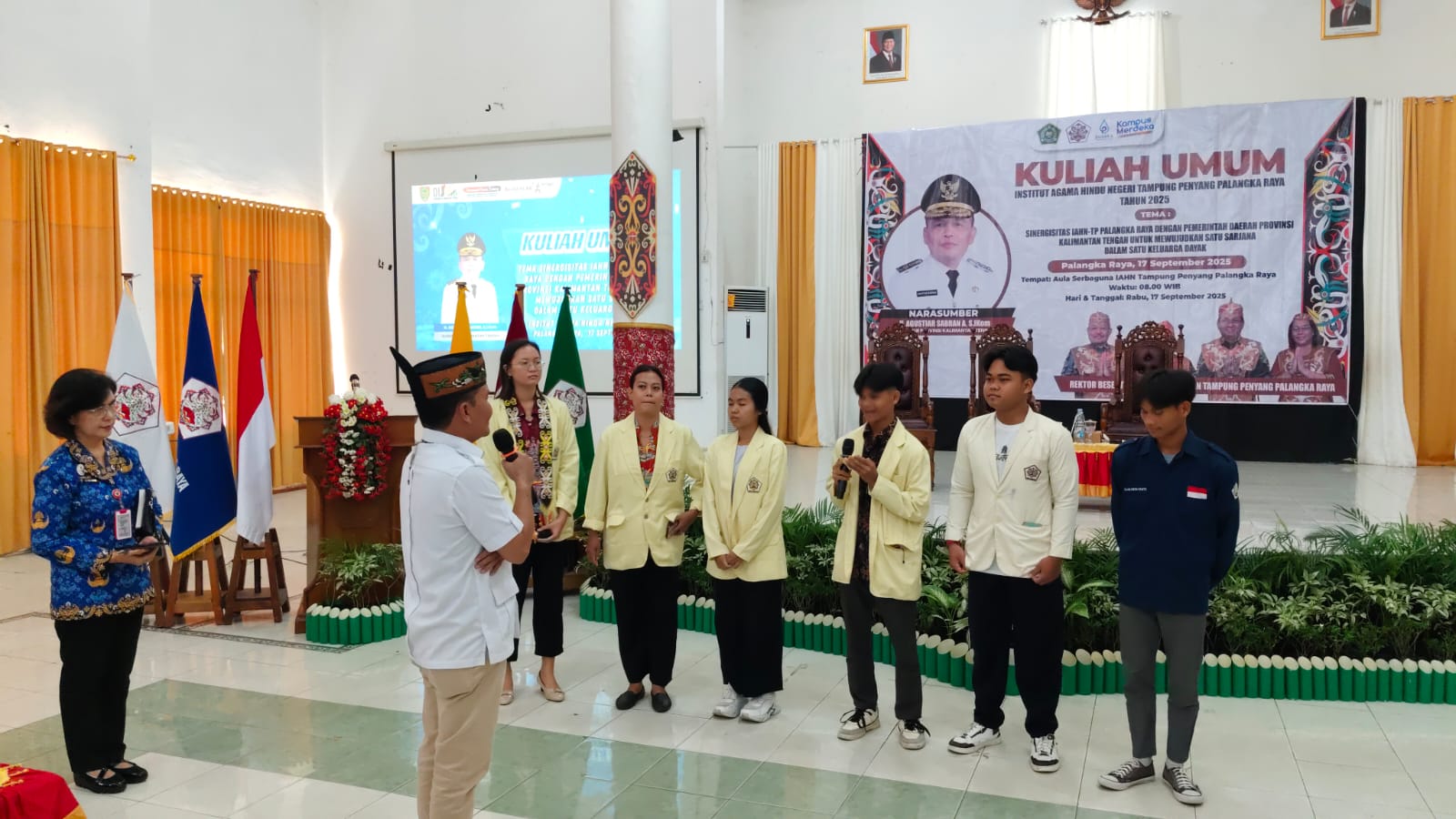 Kuliah umum yang digelar di Aula Serbaguna IAHN-TP mengangkat tema “Sinergisitas IAHN-TP Palangka Raya dengan Pemerintah Daerah Provinsi Kalimantan Tengah untuk Mewujudkan Satu Sarjana dalam Satu Keluarga Dayak.”
