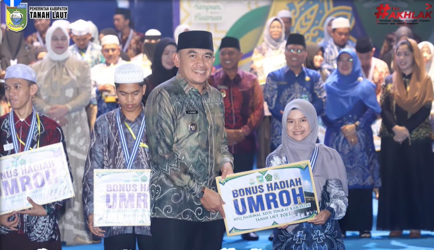 lenterakalimantan.com, PELAIHARI – Bupati Tanah Laut (Tala), Rahmat Trianto, memberikan apresiasi istimewa pada penutupan Musabaqah Tilawatil Qur’an (MTQ) XLVIII Nasional Tingkat Kabupaten Tala Tahun 2025. Ia menambahkan masing-masing satu kuota untuk pasangan maupun orang tua enam peserta terbaik yang meraih hadiah umrah.