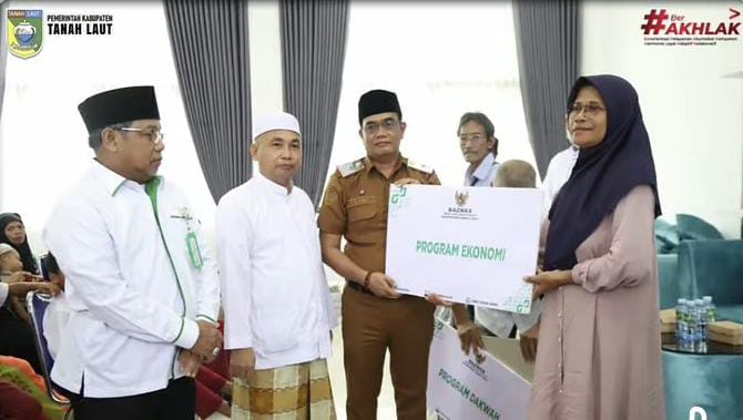 lenterakalimantan.com, PELAIHARI – Pemerintah Kabupaten Tanah Laut (Tala) melalui Sekretaris Daerah (Sekda) Ismail Fahmi menyerahkan secara simbolis bantuan Badan Amil Zakat Nasional (Baznas) kepada 150 penerima manfaat, Selasa (16/9/2025).