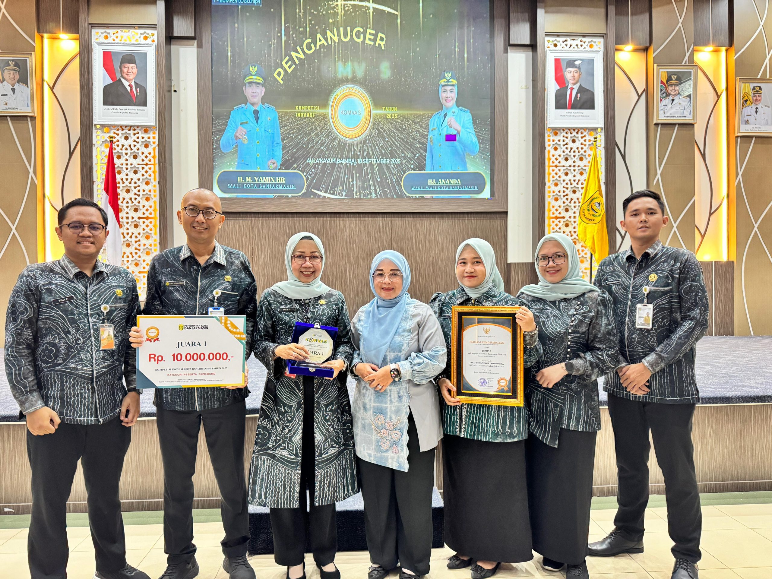 lenterakalimantan.com, BANJARMASIN – Dinas Komunikasi, Informatika, dan Statistik (Diskominfotik) Kota Banjarmasin berhasil meraih Juara 1 kategori SKPD/BUMD dalam ajang Kompetisi Inovasi (Komvas) Kota Banjarmasin Tahun 2025.
