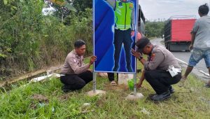 Kegiatan ini berlangsung di Jalan Bypass Batulicin–Banjarbaru KM 72, Desa Gunung Raya, Kecamatan Mantewe, Rabu (17/9/2025). Pemasangan dipimpin langsung Kasatlantas Polres Tanah Bumbu, AKP Eko Guntar, bersama personelnya.
