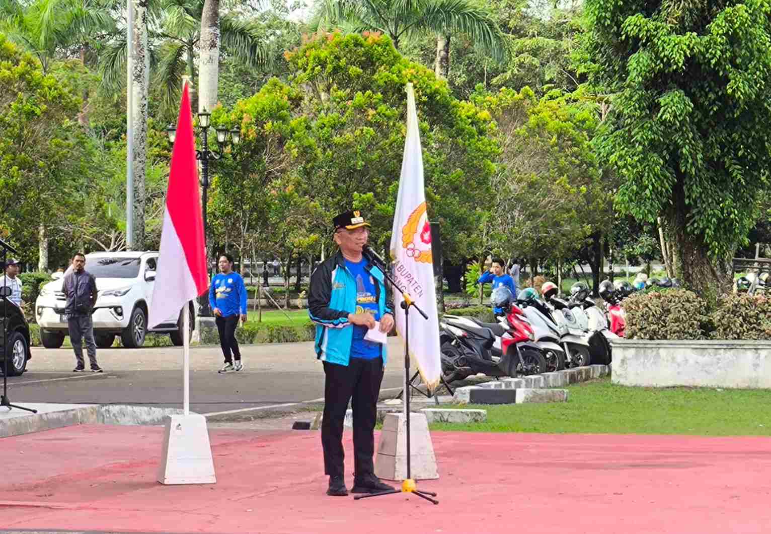 Hadir Bupati Tabalong H Muhammad Noor Rifani sekaligus memimpin apel dan melaunching Apparel kontingen secara simbolis.