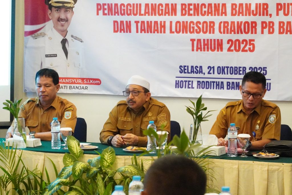 lenterakalimantan.com, MARTAPURA – Dalam rangka meningkatkan kesiapsiagaan menghadapi musim penghujan, Badan Penanggulangan Bencana Daerah (BPBD) Kabupaten Banjar menggelar Rapat Koordinasi (Rakor) Penanggulangan Bencana Banjir, Puting Beliung, dan Tanah Longsor (PB Batingsor) Tahun 2025, Selasa (21/10/2025) pagi, di Hotel Roditha Banjarbaru.