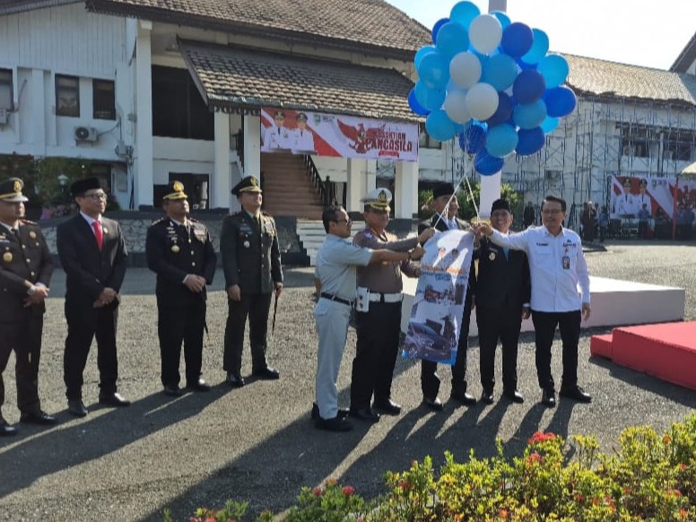 Bupati Tala, Rahmat Trianto, terlihat memimpin peluncuran usai apel Hari Kesaktian Pancasila, didampingi Wakil Bupati, Muhammad Zazuli.