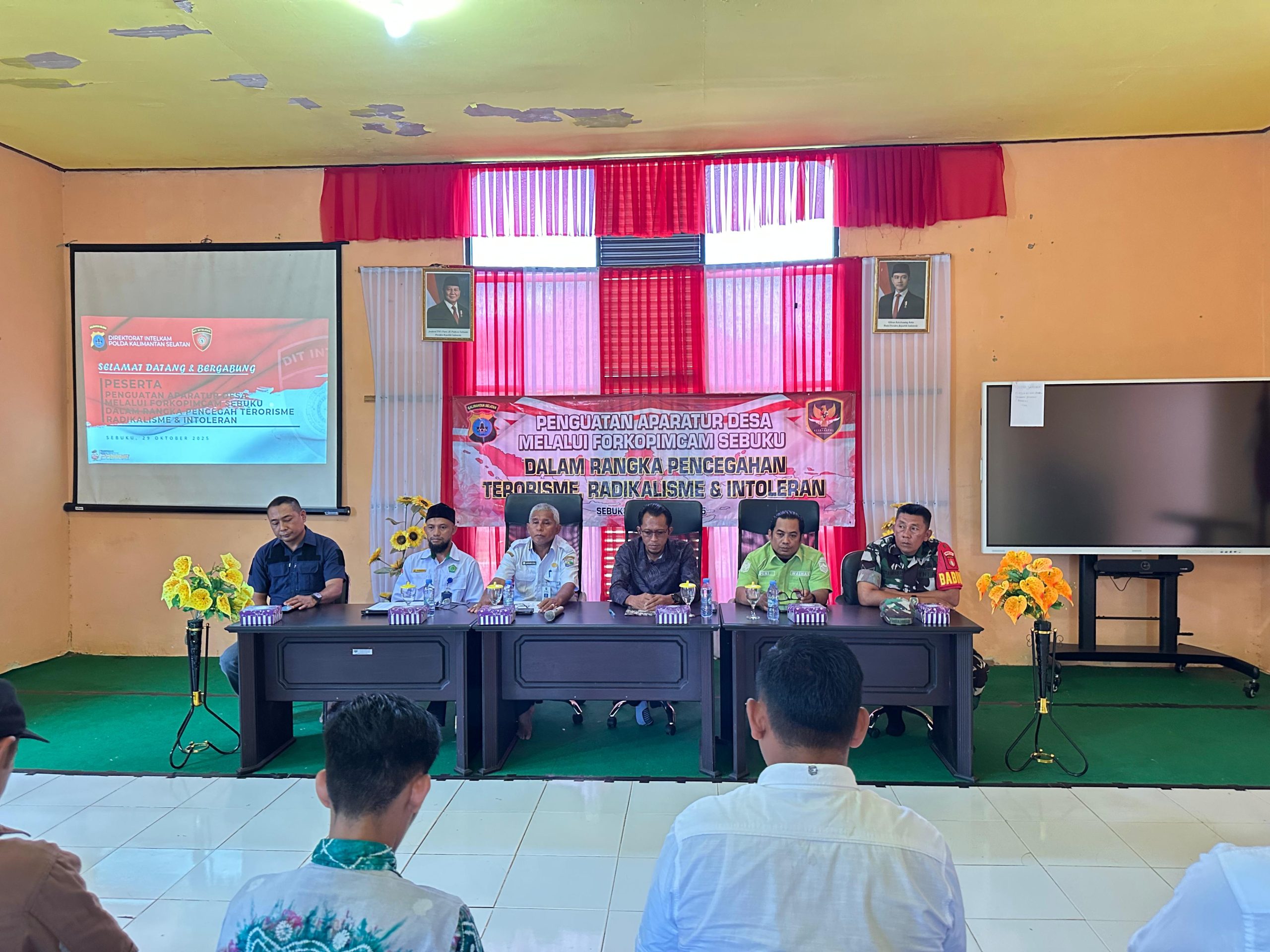 lenterakalimantan.com, KOTABARU – Direktorat Intelijen dan Keamanan (Intelkam) Kepolisian Daerah (Polda) Kalimantan Selatan melaksanakan kegiatan Penguatan Aparatur Desa di Kecamatan Pulau Sebuku, Kabupaten Kotabaru, Rabu (29/10/2025).