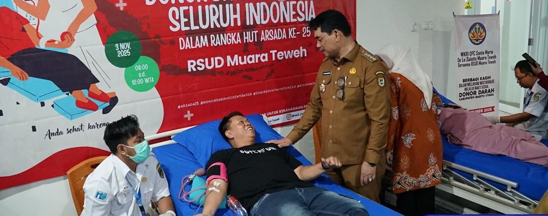 lenterakalimantan.com, MUARA TEWEH — Bupati Barito Utara, H. Shalahuddin, S.T., M.T., secara resmi membuka kegiatan Bakti Sosial Donor Darah dalam rangka HUT Asosiasi Rumah Sakit Daerah (ARSADA) ke-25, sekaligus meluncurkan program Parkir Gratis dan dua inovasi layanan terbaru RSUD Muara Teweh, yakni Sistem Informasi Kearsipan Dinamis Terintegrasi (SRIKANDI) dan Sistem Pelayanan Antar Obat Terintegrasi Kelompok Rentan Kronis (SIMPATIK).