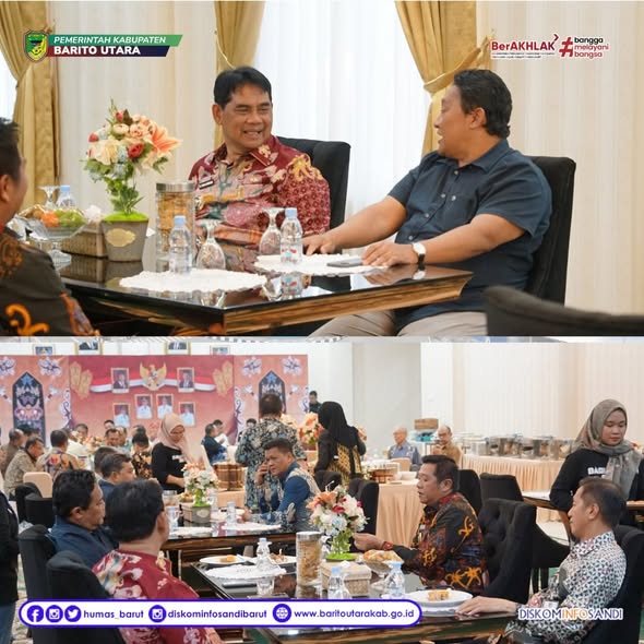lenterakalimantan.com, MUARA TEWEH – Bupati Barito Utara, H. Shalahuddin, S.T., M.T., didampingi Wakil Bupati Felix Soenadi Y. Tingan, menyambut kedatangan Wakil Gubernur Kalimantan Tengah, H. Edy Pratowo, di rumah jabatan Bupati Muara Teweh. Penyambutan berlangsung hangat dan penuh keakraban bersama rombongan tamu Pemerintah Provinsi Kalimantan Tengah, Jum’at (21/11/2025).