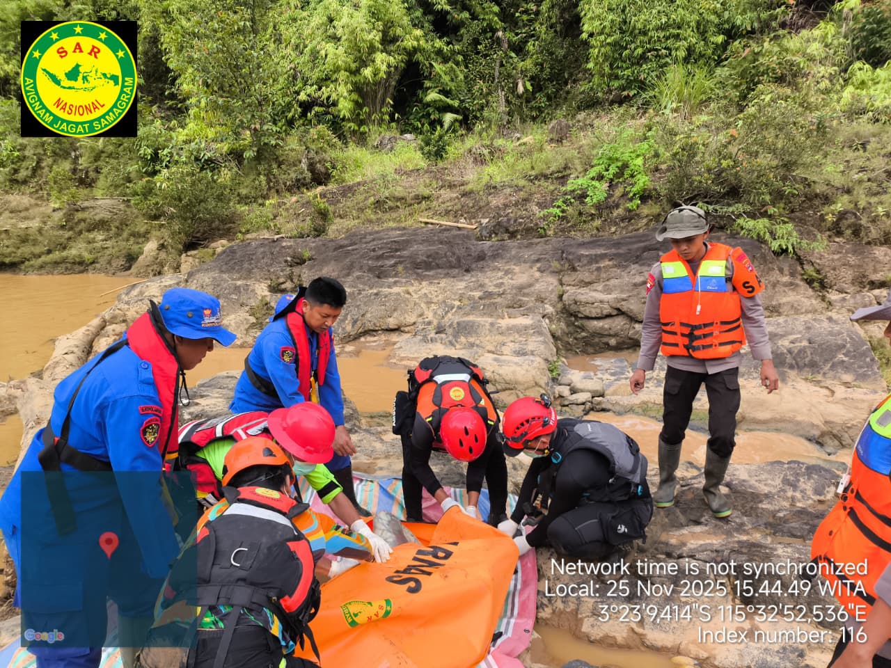 Operasi pencarian memasuki hari ketiga pada Selasa (25/11/2025). Sekitar pukul 07.00 Wita, tim kembali melakukan briefing untuk menyiapkan personel, peralatan, serta menentukan metode pencarian yang efektif mengingat kondisi sungai yang berarus deras dan berbatu.