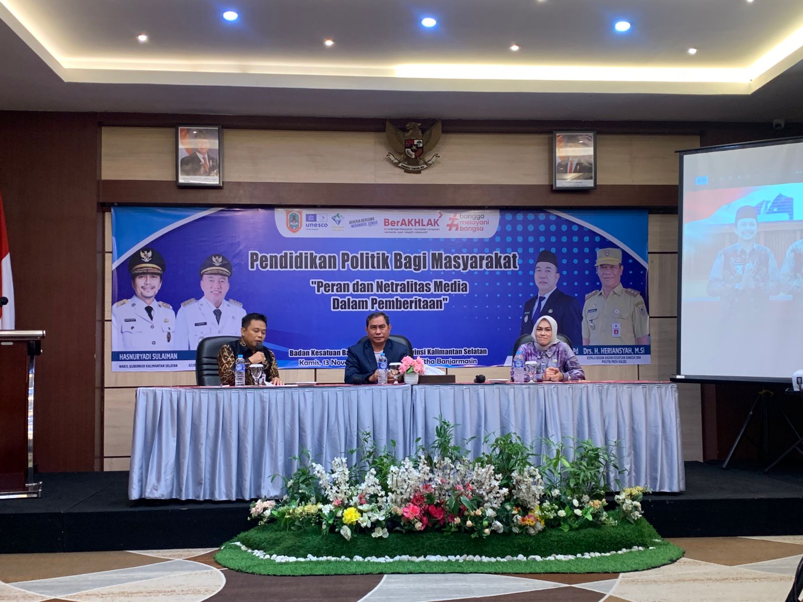 lenterakalimantan.com, BANJARMASIN – Badan Kesatuan Bangsa dan Politik (Bakesbangpol) Kalimantan Selatan (Kalsel) menggelar kegiatan Pendidikan Politik bagi Masyarakat dengan tema “Peran dan Netralitas Media dalam Pemberitaan”, Kamis (13/11/2025).