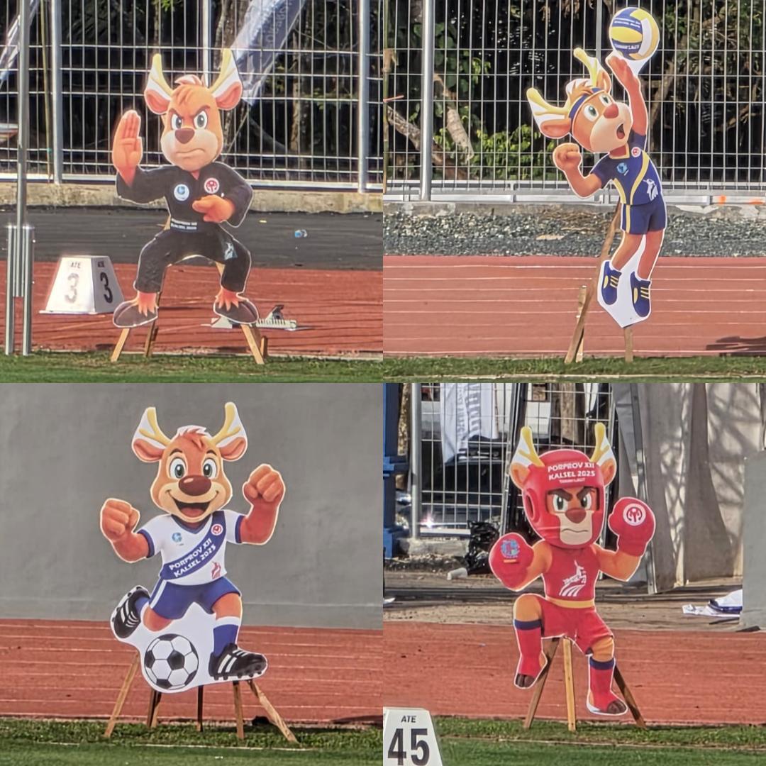 Total ada 10 standee berukuran besar yang menampilkan sosok maskot resmi Porprov XII Kalsel 2025, dengan berbagai pose yang mewakili cabang olahraga berbeda.