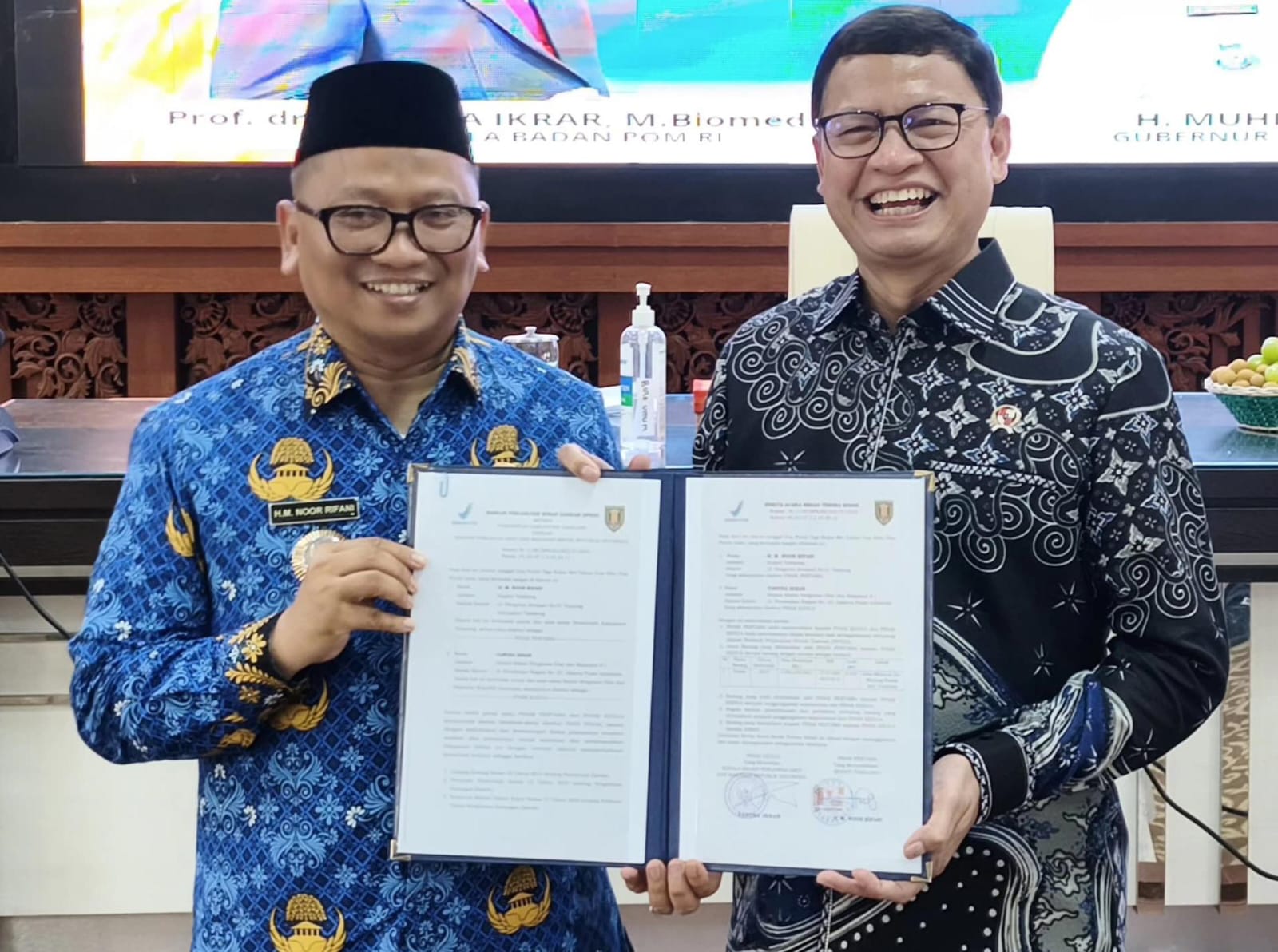 Bupati Tabalong, Muhammad Noor Rifani, menerima apresiasi dari Kepala BPOM RI, Taruna Ikrar. Foto: Humas Prokopim Kalteng