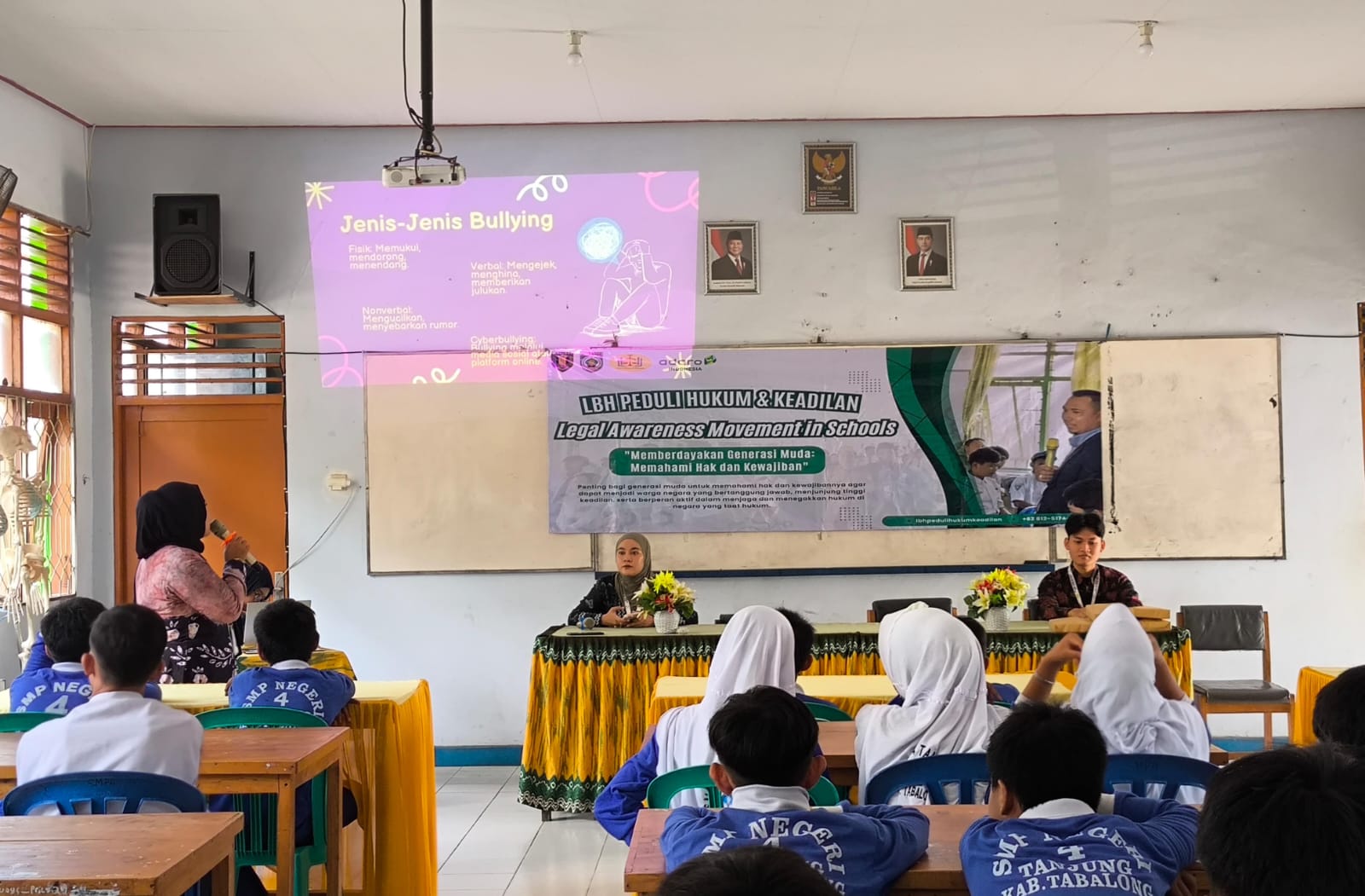 lenterakalimantan.com, TANJUNG – Lembaga Bantuan Hukum (LBH) Peduli Hukum dan Keadilan menggelar sosialisasi hukum bagi pelajar di Kabupaten Tabalong, Kamis (11/12/2025). Setelah dilaksanakan di sejumlah sekolah kegiatan terakhir LBH di tahun ini dilaksanakan di SMPN 4 Tanjung, Jalan Tanjung Selatan, Pembataan, Murung Pudak, dengan fokus membangun kesadaran hukum di kalangan siswa.