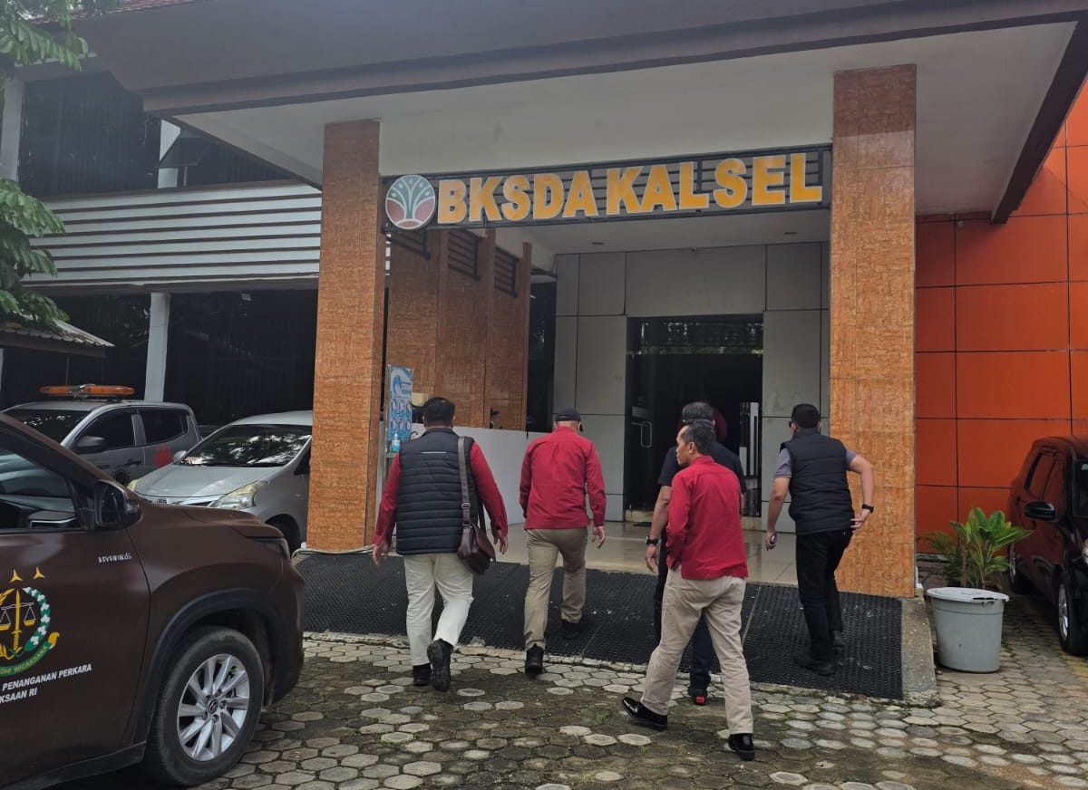 lenterakalimantan.com, BANJARBARU – Halaman kantor Balai Konservasi Sumber Daya Alam (BKSDA) Kalimantan Selatan yang berada di Jalan Bhayangkara Nomor C, Kelurahan Sungai Besar, Kota Banjarbaru, Kalimantan Selatan, dipenuhi sejumlah mobil yang terparkir, Rabu (17/12/2025). Terpantau, mobil-mobil berwarna cokelat dan berlogo Kejaksaan membawa beberapa penyidik dari Kejaksaan Tinggi (Kejati) Kalimantan Selatan.