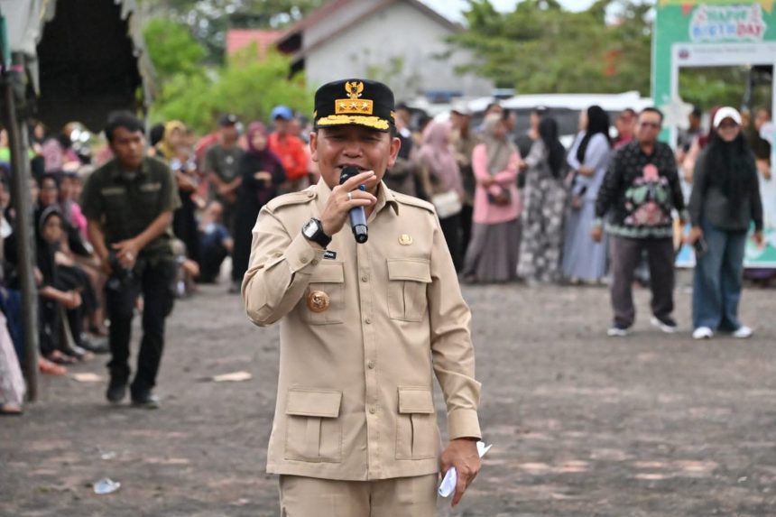 Usai melakukan panen dan penebaran benur udang vaname di kawasan Shrimp Estate Berkah, Gubernur Kalteng Agustiar Sabran bersama rombongan melanjutkan kegiatan ke Kantor Kecamatan Pantai Lunci, Kabupaten Sukamara, Minggu (7/12/2025). Di lokasi tersebut, Gubernur meninjau pelaksanaan Pasar Murah sekaligus kegiatan cek kesehatan gratis bagi warga.