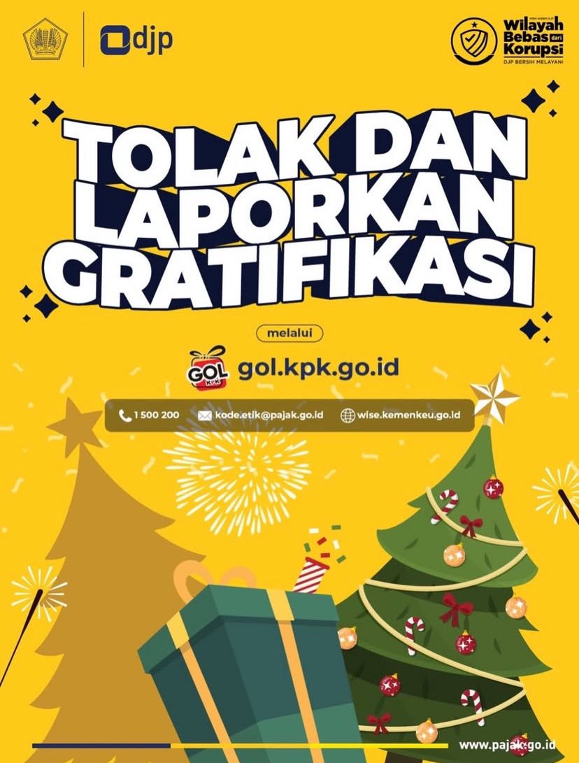 Melalui imbauan ini, DJP Kalselteng mengajak seluruh pihak untuk bersama-sama menolak dan melaporkan gratifikasi demi mewujudkan pelayanan perpajakan yang bersih, transparan, dan berintegritas.