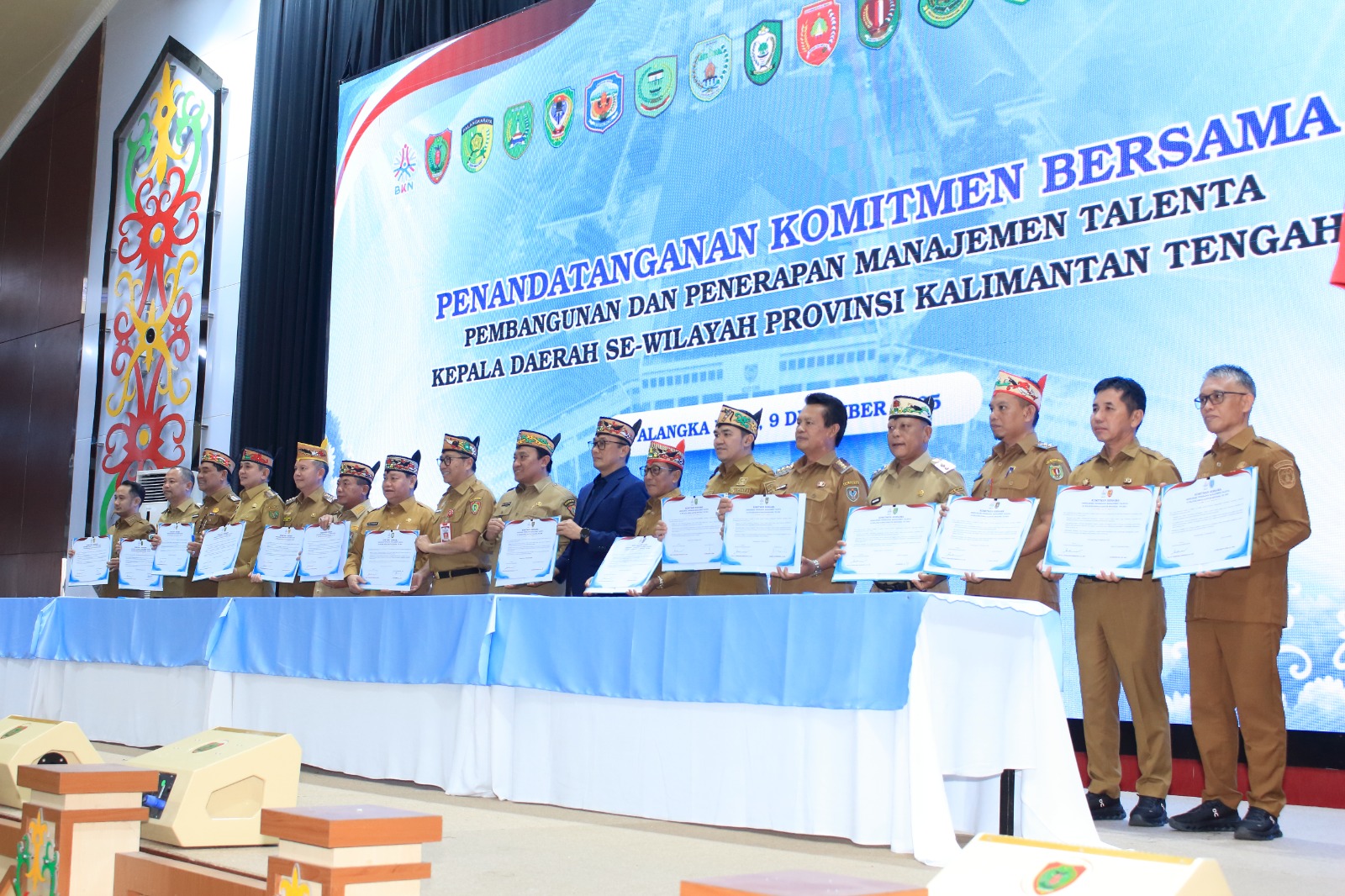 lenterakalimantan.com, PALANGKA RAYA – Upaya meningkatkan kualitas Aparatur Sipil Negara (ASN) memasuki babak baru di Kalimantan Tengah. Para Bupati dan Wali Kota se-Kalteng hari ini, Selasa (09/12/2025), resmi menandatangani komitmen bersama penerapan Manajemen Talenta ASN sebagai langkah memperkuat kompetensi, integritas, serta evaluasi kinerja aparatur secara berkelanjutan.