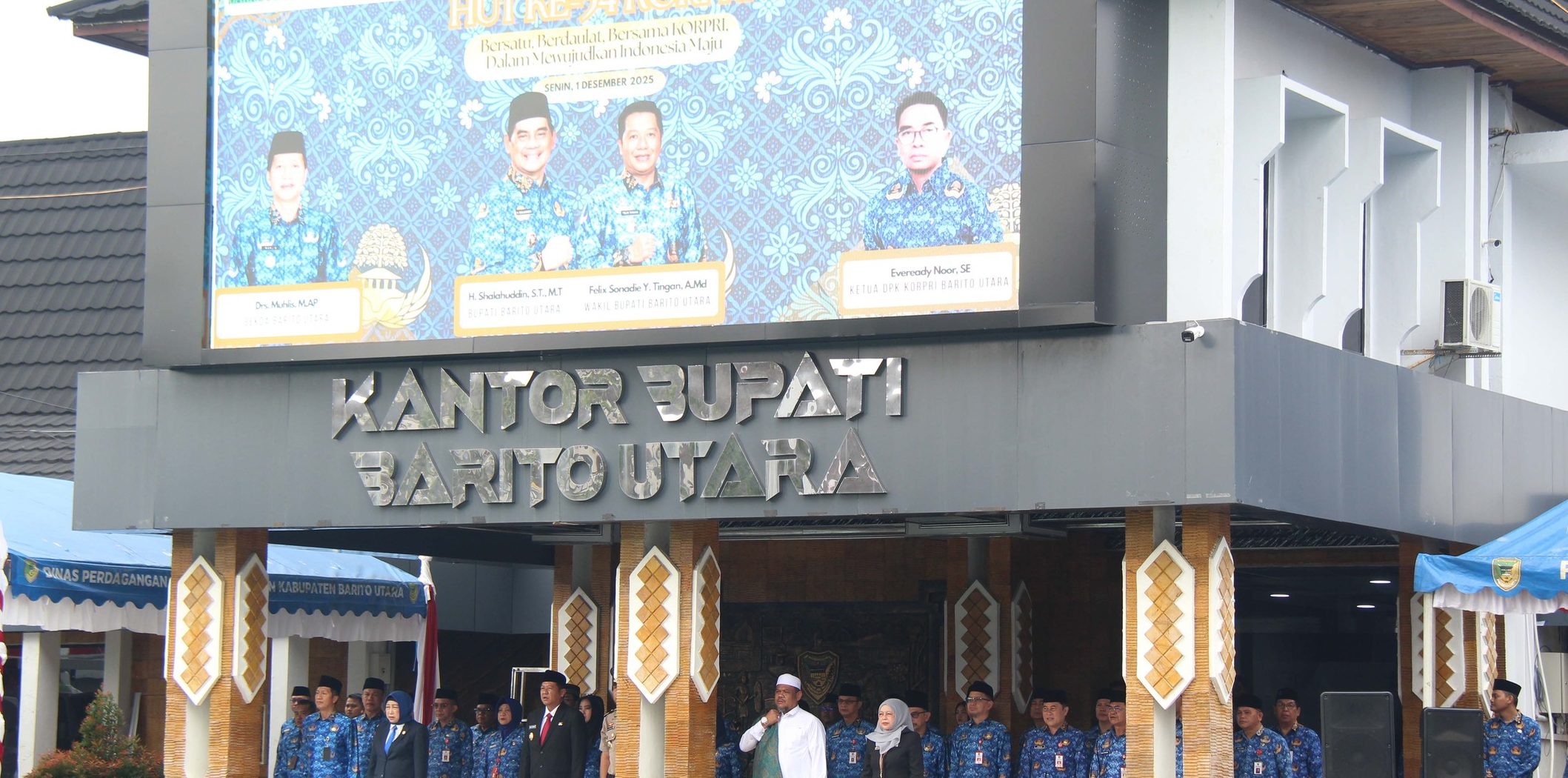 lenterakalimantan.com, MUARA TEWEH – Suasana khidmat menyelimuti halaman kantor Bupati Barito Utara saat upacara peringatan Hari Ulang Tahun ke-54 KORPRI digelar. Ketua DPRD Barito Utara, Ir. Hj. Mery Rukaini, M.IP, turut hadir dan memberikan perhatian penuh bagi para Aparatur Sipil Negara (ASN), Senin (1/12/2025).