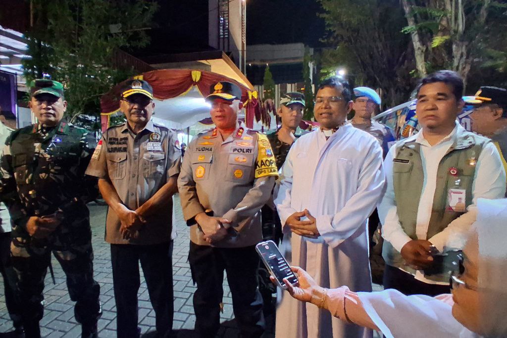 “Malam ini kami bersama Forkopimda, Ketua DPRD, perwakilan Gubernur, Pangdam, Danlanal, Danlanud, serta pejabat utama Polda melaksanakan pengecekan langsung pengamanan perayaan Natal,” jelasnya.