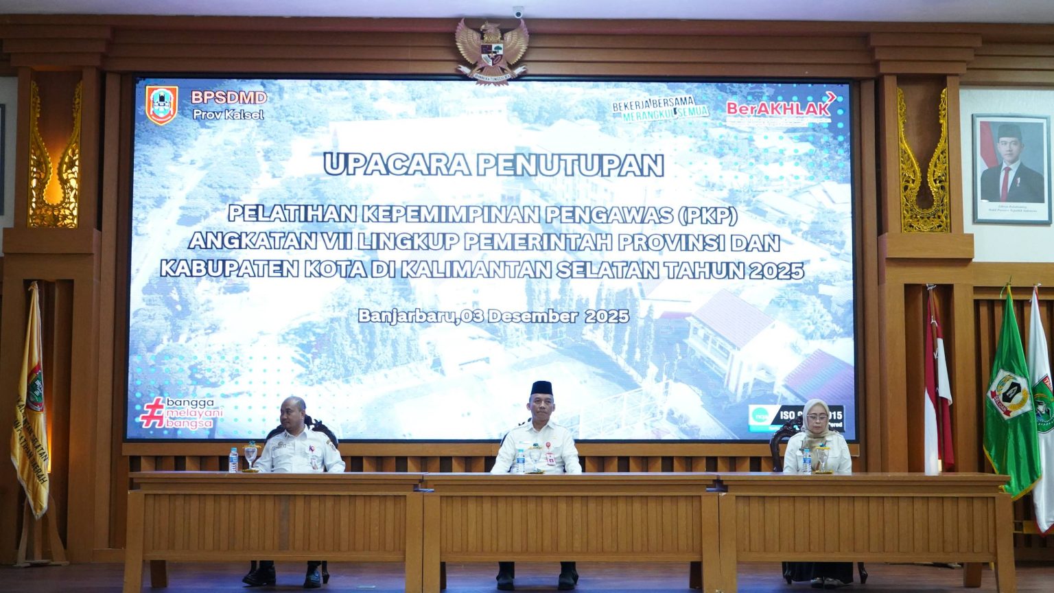 lenterakalimantan.com, BANJARBARU – Pemerintah Provinsi (Pemprov) Kalimantan Selatan (Kalsel) melalui Badan Pengembangan Sumber Daya Manusia Daerah (BPSDMD) Kalsel resmi menutup Pelatihan Kepemimpinan Pengawas (PKP) Angkatan VII Tahun 2025. Upacara penutupan berlangsung di Aula Kampus I BPSDMD Kalsel, Rabu (3/12/2025).