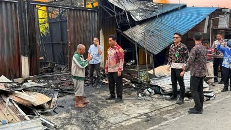 lenterakalimantan.com, MUARA TEWEH – Bupati Barito Utara H. Shalahuddin, S.T., M.T. meninjau langsung lokasi kebakaran yang terjadi di Jalan Merak, Simpang Anem, Kabupaten Barito Utara. Kebakaran yang terjadi pada Senin malam tersebut menghanguskan satu unit rumah dan empat pintu ruko, menyebabkan kerugian material bagi para korban.