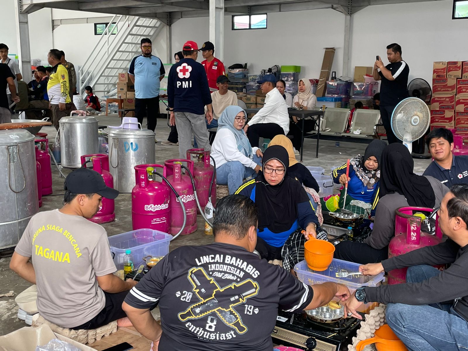 Ia menyisiri setiap sudut dapur umum untuk melihat proses pengolahan makanan. Di sela-sela aktivitas tersebut, Rahmat menyempatkan diri berkomunikasi dengan para petugas dan relawan yang menyediakan konsumsi bagi ribuan warga.