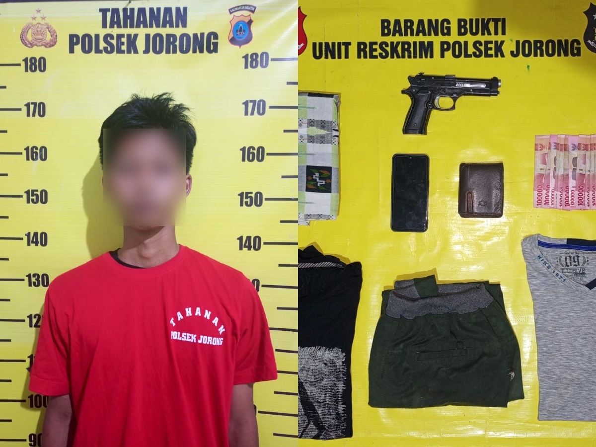 lenterakalimantan.com, PELAIHARI – Polisi bergerak cepat mengungkap kasus pencurian dengan ancaman senjata api yang terjadi di Kecamatan Jorong, Kabupaten Tanah Laut. Kurang dari 24 jam setelah kejadian, pelaku berhasil ditangkap oleh jajaran Polsek Jorong.