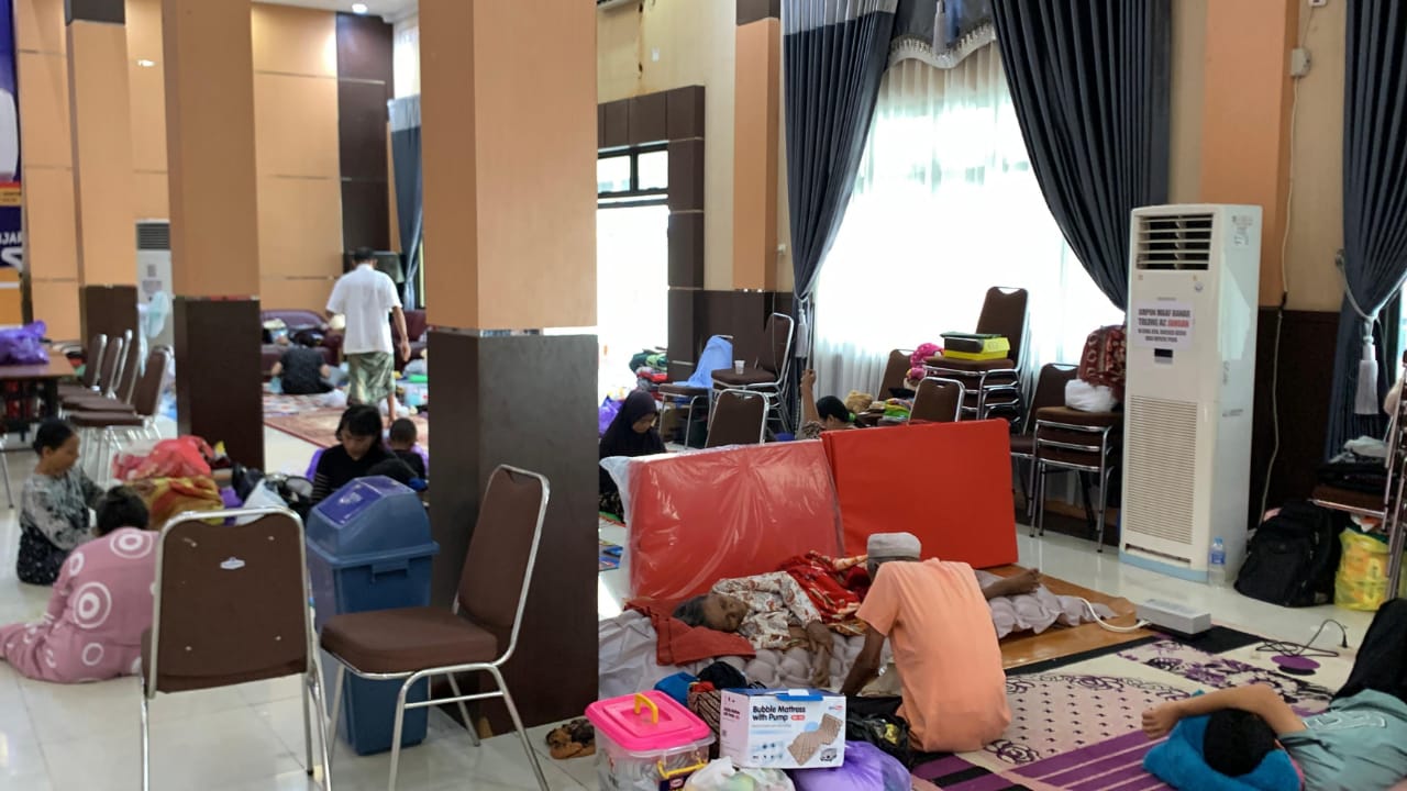 Selama berada di pengungsian, para pengungsi mendapatkan makan tiga kali sehari, makanan ringan, selimut, alas tidur, serta bantuan sembako. Selain itu, tersedia pula bantuan pakaian, popok bayi dan dewasa, serta susu bagi pengungsi yang membutuhkan.