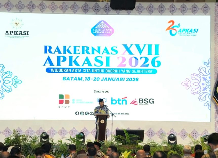 Hal tersebut disampaikannya saat menghadiri Rapat Kerja Nasional (Rakernas) XVII Asosiasi Pemerintah Kabupaten Seluruh Indonesia (APKASI) Tahun 2026 yang digelar di Grand Lotus Ballroom Hotel Aston Batam, Kepulauan Riau, Ahad (18/1/2026).