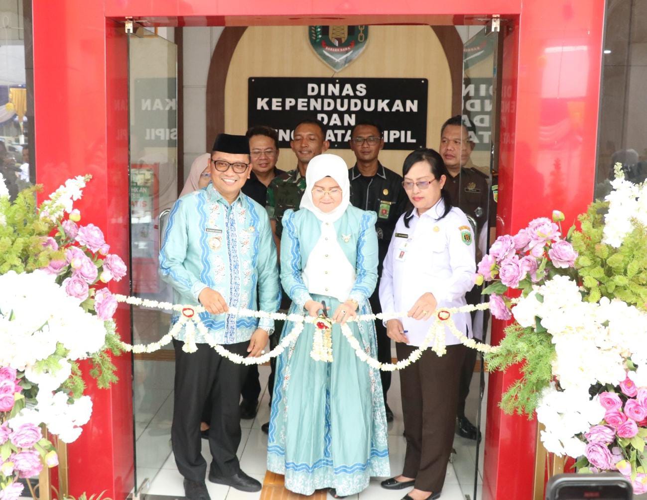 Peresmian kantor baru Disdukcapil dilakukan Bupati Tabalong, Muhammad Noor Rifani, yang ditandai pemotongan untaian bunga oleh Ketua TP PKK Tabalong, Desi Suryanti Noor Rifani, serta sejumlah unsur Forkopimda.