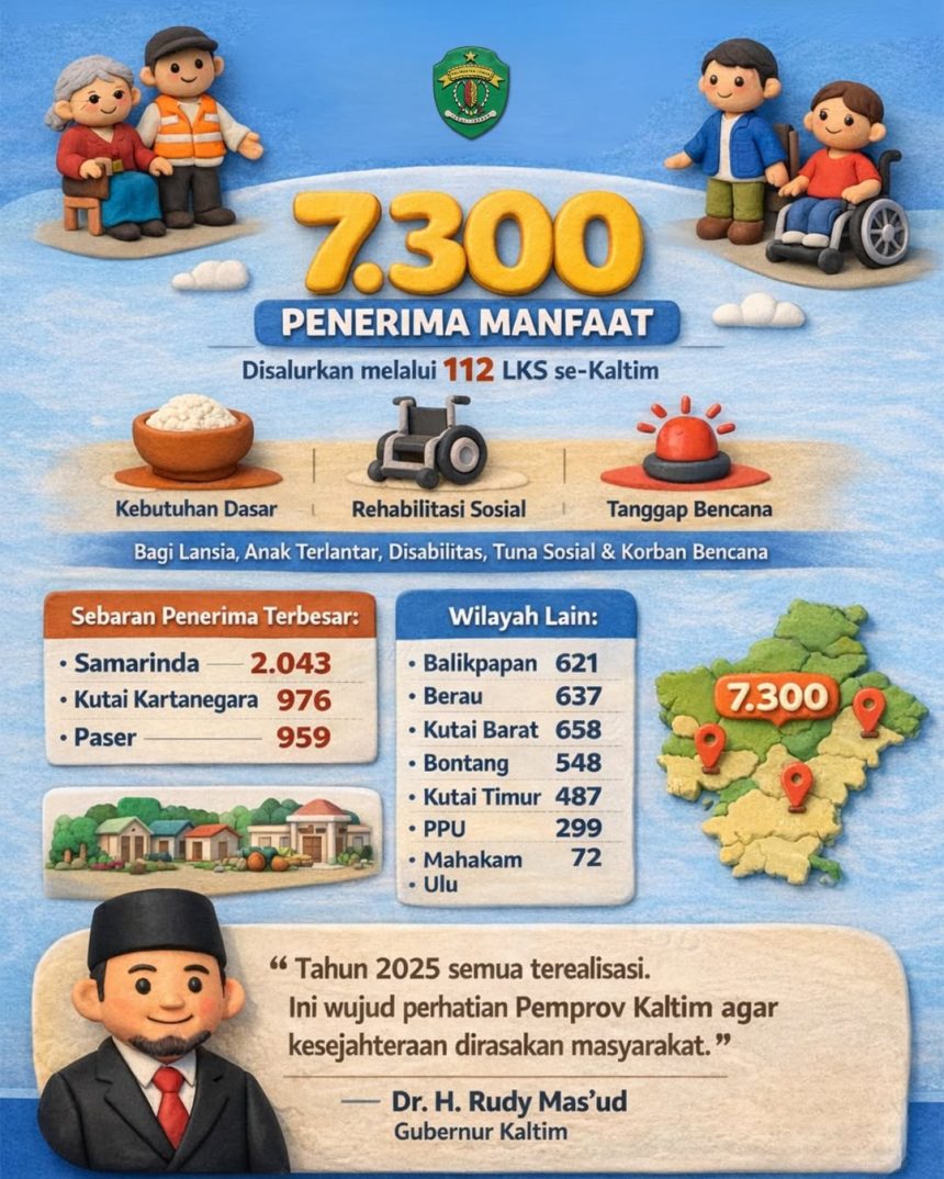 lenterakalimantan.com, SAMARINDA – Sebanyak 7.300 penerima manfaat memperoleh Bantuan Sosial Terencana (BST) yang direalisasikan Pemerintah Provinsi Kalimantan Timur (Pemprov Kaltim) sepanjang tahun 2025. Bantuan tersebut menjadi bukti nyata komitmen pemerintah daerah dalam meningkatkan kesejahteraan masyarakat.