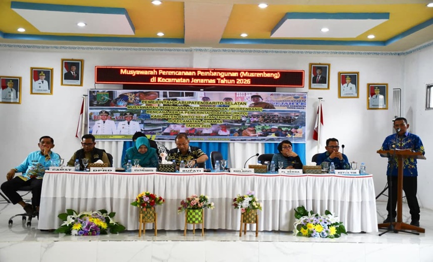 lenterakalimantan.com, BUNTOK – Pemerintah Kabupaten Barito Selatan menggelar Musyawarah Perencanaan Pembangunan Kecamatan (Musrenbangcam) RKPD Tahun 2027 tingkat Kecamatan Jenamas, Kamis (5/2/2026), di Aula Kantor Kecamatan Jenamas.
