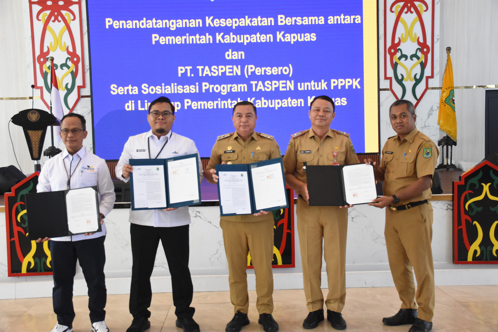 lenterakalimantan.com, KUALA KAPUAS – Pemerintah Kabupaten Kapuas bersama PT Taspen (Persero) Cabang Palangka Raya melaksanakan penandatanganan Kesepakatan Bersama yang dirangkai dengan sosialisasi program Taspen bagi Pegawai Pemerintah dengan Perjanjian Kerja (PPPK), Senin (9/2/2026), di Hall Rumah Jabatan Bupati Kapuas.