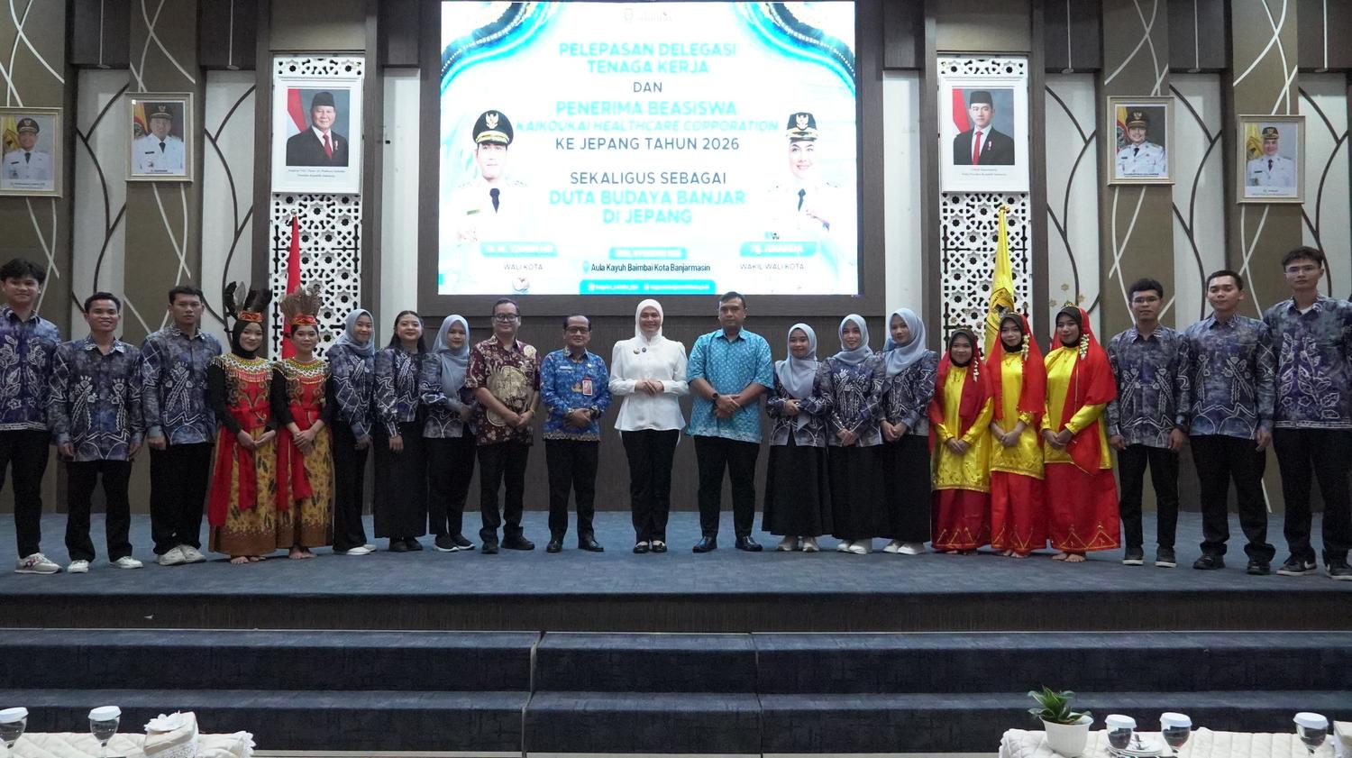 lenterakalimantan.com, BANJARMASIN – Pemerintah Kota (Pemkot) Banjarmasin melepas 15 delegasi tenaga kerja dan penerima beasiswa program kerja sama dengan Kaikoukai Healthcare Corporation ke Jepang, Rabu (18/2/2026). Pelepasan angkatan keempat itu digelar di Aula Kayuh Baimbai, Balai Kota Banjarmasin.