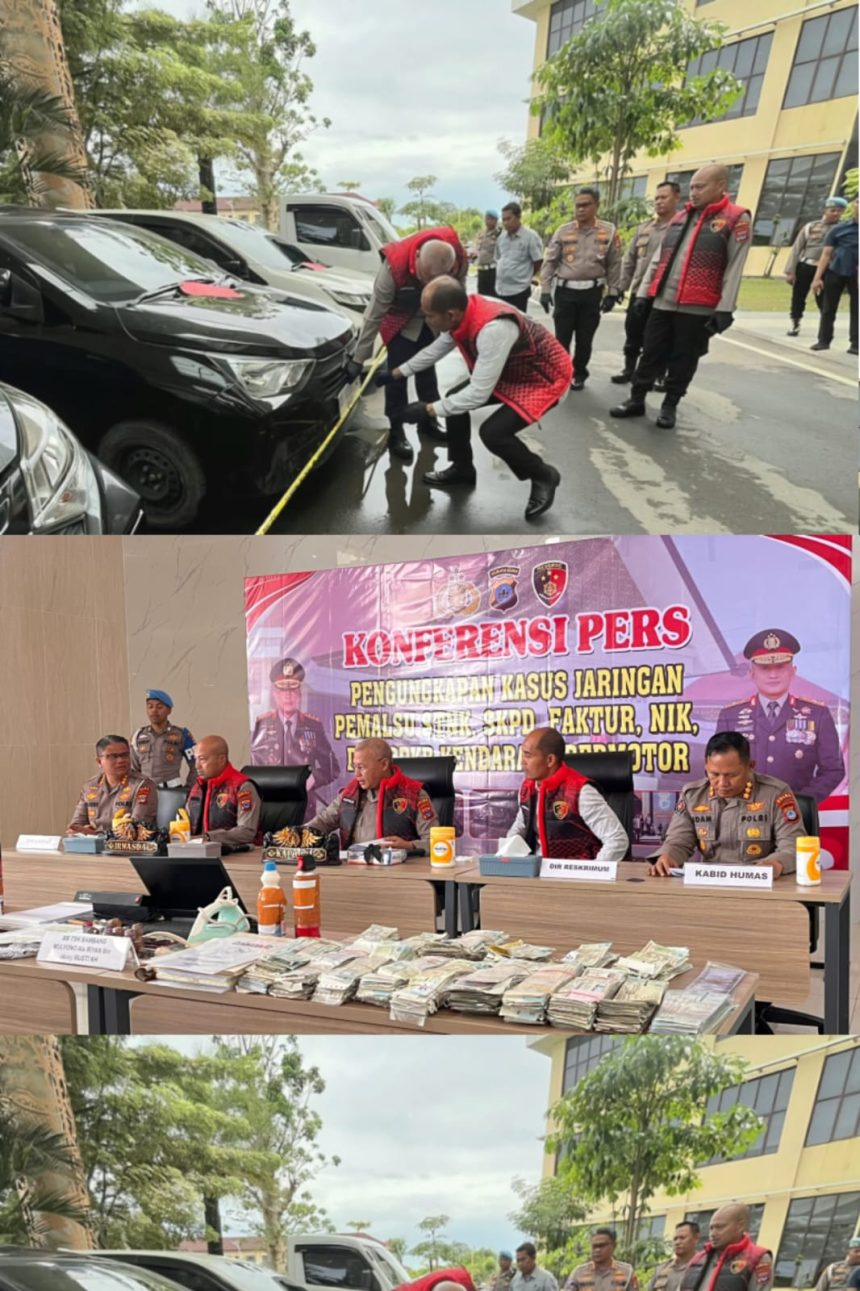 lenterakalimantan.com, BANJARBARU – Direktorat Reserse Kriminal Umum Polda Kalimantan Selatan membongkar sindikat pemalsuan dokumen kendaraan bermotor jaringan lintas provinsi yang telah beroperasi sejak 2017. Dalam pengungkapan kasus ini, polisi mengamankan enam tersangka beserta puluhan kendaraan dan ratusan ribu dokumen palsu.