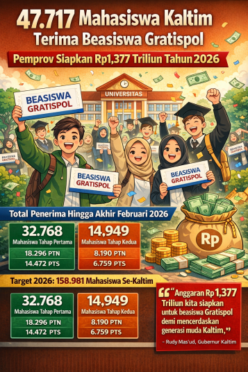 lenterakalimantan.com, SAMARINDA – Hingga akhir Februari 2026, Pemerintah Provinsi Kalimantan Timur telah menyalurkan bantuan pendidikan Program Gratispol kepada 47.717 mahasiswa di perguruan tinggi negeri (PTN) dan perguruan tinggi swasta (PTS) se-Kaltim.