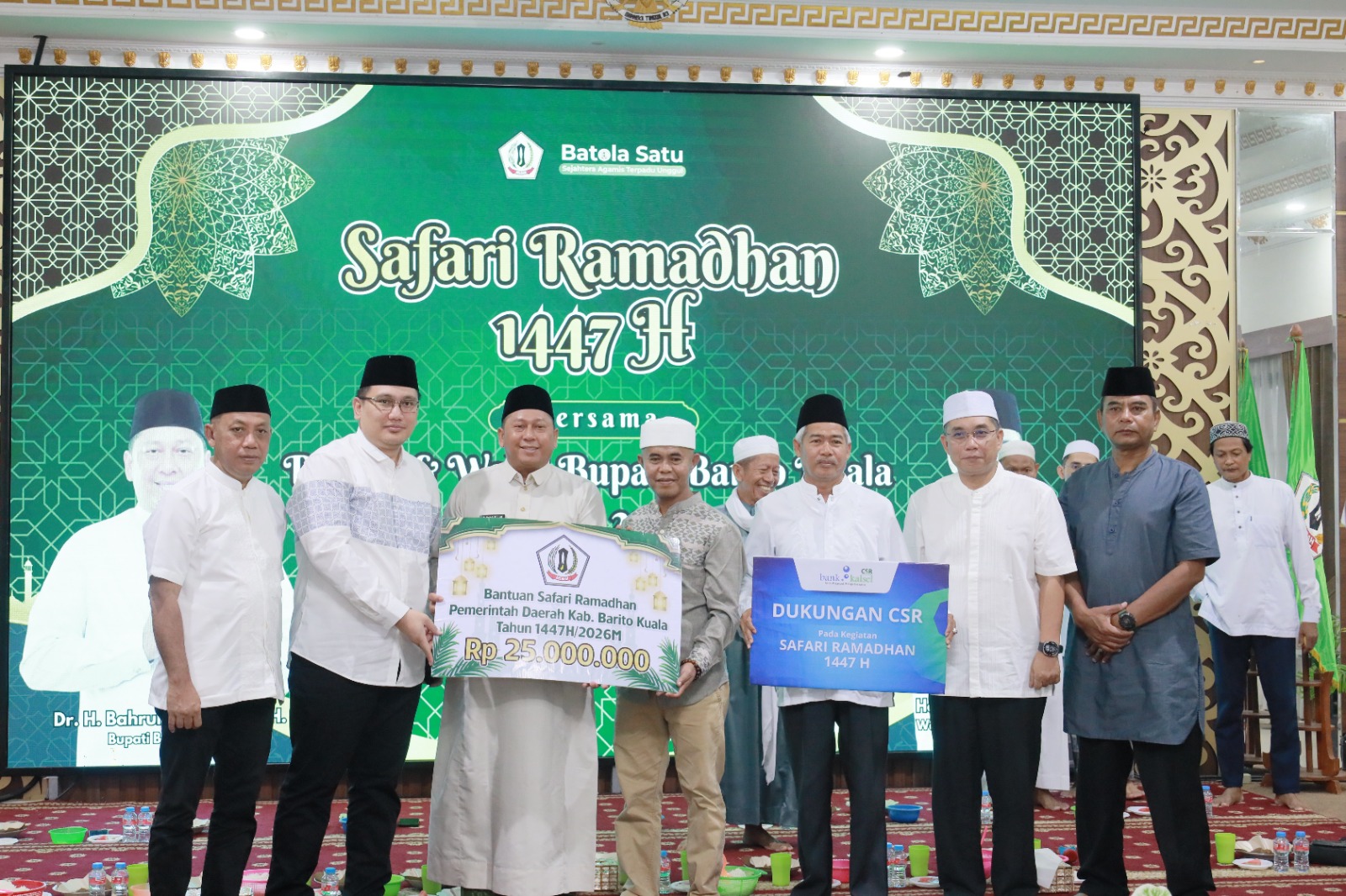 Rangkaian kegiatan berlangsung khidmat, diawali dengan pembacaan ayat suci Al-Qur’an, tausiyah agama, serta penyerahan bantuan secara simbolis. Acara kemudian ditutup dengan buka puasa bersama yang semakin mempererat kebersamaan dan semangat gotong royong masyarakat Batola.
