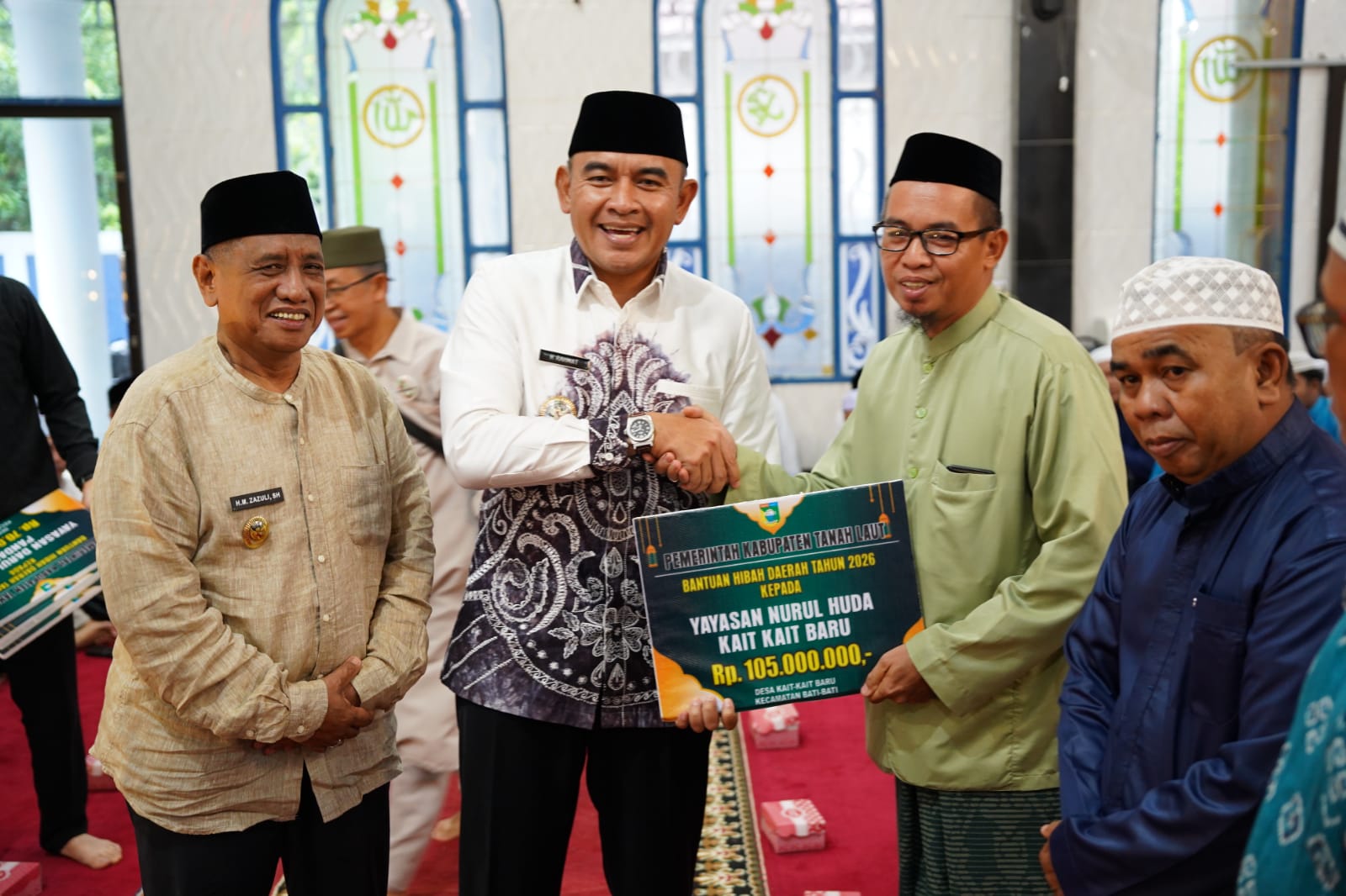 Selain itu, turut diserahkan dana hibah kepada 11 organisasi keagamaan yang meliputi majelis taklim, tempat ibadah, yayasan pendidikan berbasis Islam, rukun kematian, serta kelompok Maulid Habsyi dengan total dana hibah sebesar Rp240 juta yang disalurkan melalui Bagian Kesejahteraan Rakyat (Kesra) Setda Tanah Laut.