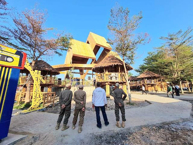 Salah satu perubahan yang menjadi sorotan adalah penggunaan material bangunan. Dalam konsep awal, bangunan di kawasan wisata itu dirancang menggunakan bambu agar selaras dengan konsep wisata tradisional. Namun di lapangan, beberapa bangunan justru diganti menggunakan material bata permanen.