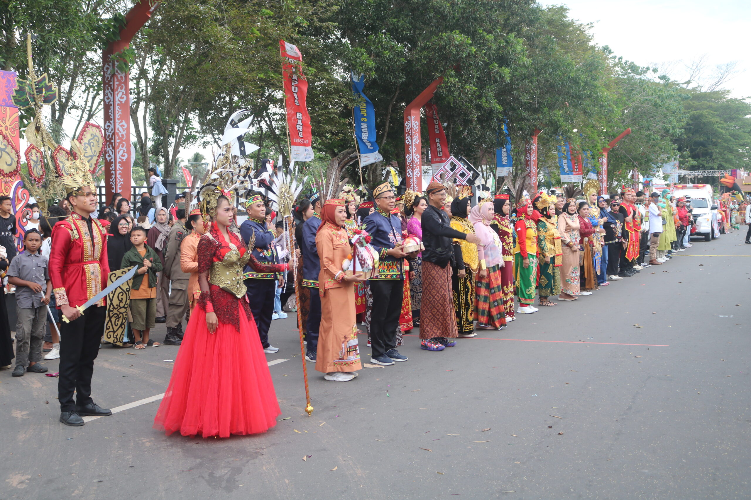 Sebagian peserta tampil anggun mengenakan pakaian adat Nusantara. Kelompok lainnya mengenakan batik berwarna oranye dan merah lengkap dengan atribut lawung dan sumping, sementara kelompok lain tampil lebih santai dengan kaos hitam bernuansa dinamis. Bahkan, terdapat pula peserta yang mengenakan kostum maskot karnaval yang menarik perhatian masyarakat.