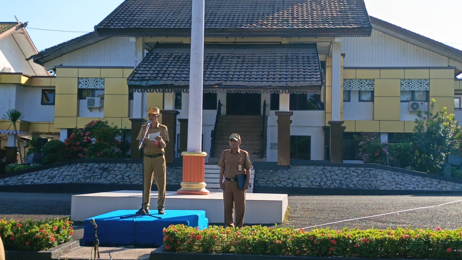 Kepala DKPP Tanah Laut, M. Kusri, saat menyampaikan amanat pada apel gabungan di halaman Kantor Bupati Tanah Laut. Foto: Diah Ayu Fatimah