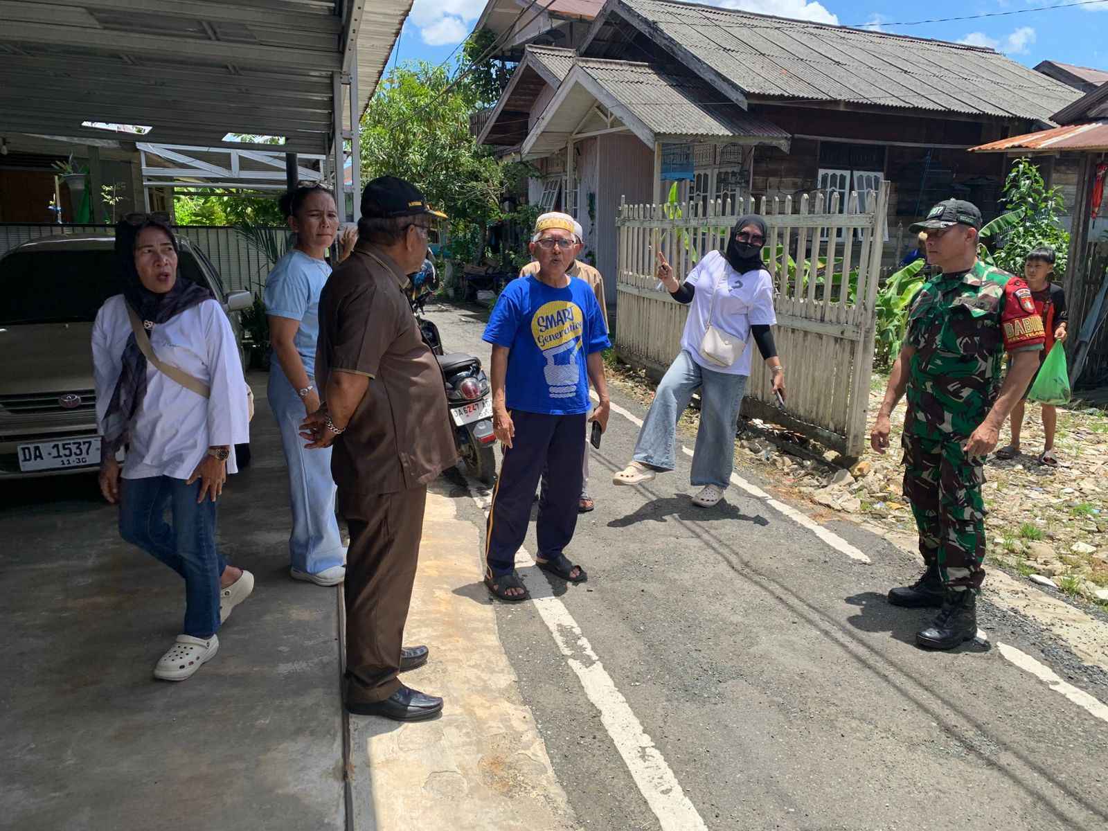Peninjauan kemudian berlanjut ke RT 14, Kelurahan Telaga Biru. Warga mengeluhkan kondisi jalan lingkungan yang rusak akibat genangan air.