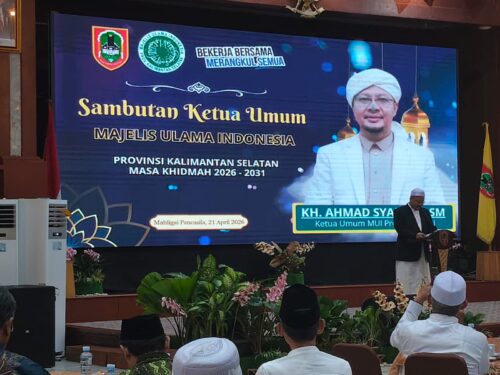 lenterakalimantan.com, BANJARMASIN — Pengurus Majelis Ulama Indonesia (MUI) Kalimantan Selatan masa khidmat 2026–2031 resmi dikukuhkan di Gedung Mahligai Banjarmasin, Selasa (21/4/2026) malam.