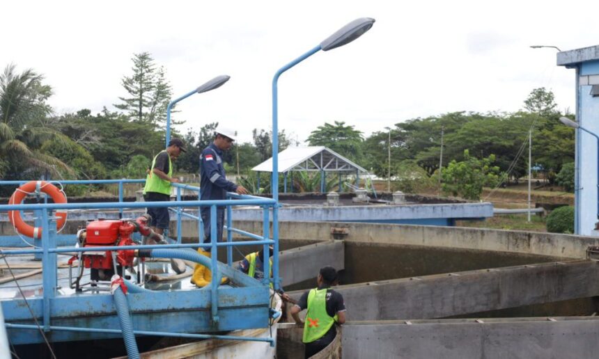 lenterakalimantan.com, BANJARMASIN – Komitmen menjaga kualitas air bersih terus dilakukan PAM Bandarmasih. Salah satunya melalui kegiatan pengurasan dan pembersihan reservoar di Instalasi Pengolahan Air (IPA) II Pramuka.