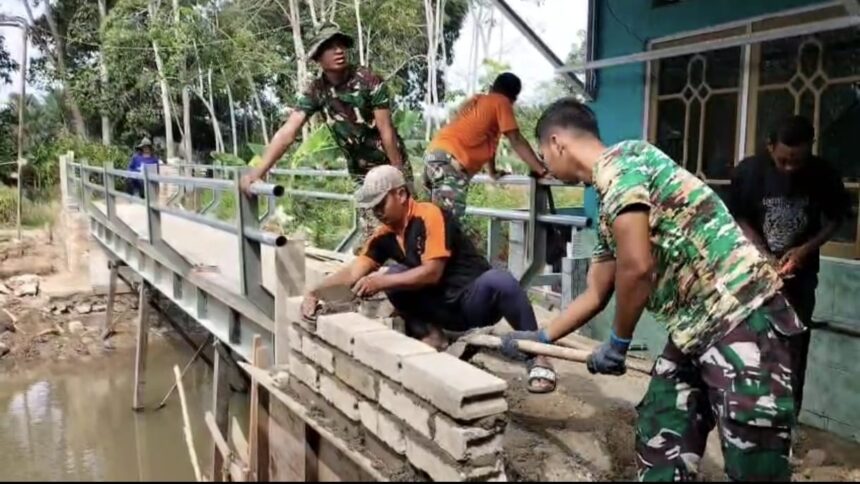 “Pengerjaan dilakukan secara gotong royong antara TNI dan masyarakat. Di lapangan, personel bersama warga bahu-membahu menyusun batu bata dan meratakan adukan semen sebagai bagian dari penguatan struktur jembatan,” ujarnya.