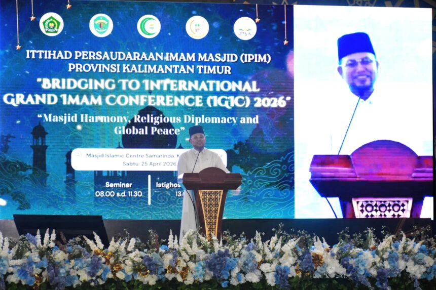 lenterakalimantan.com, SAMARINDA – Peran imam masjid sebagai penjaga harmoni dan persatuan umat menjadi sorotan dalam Tabligh Akbar rangkaian Bridging Konferensi Imam Internasional yang digelar di Masjid Islamic Center Samarinda, Sabtu (25/4/2026).