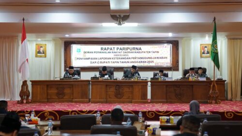 Dalam sambutannya, Bupati Tapin H. Yamani menyampaikan bahwa rapat paripurna LKPJ merupakan bagian dari siklus penyelenggaraan pemerintahan daerah sebagai bentuk transparansi dan akuntabilitas kepada DPRD.