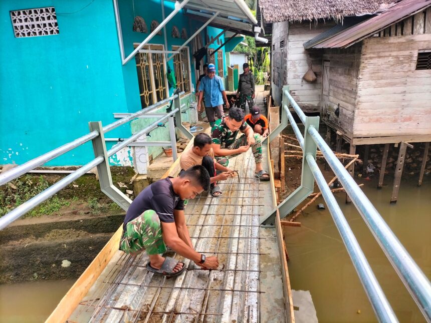 lenterakalimantan.com, BARABAI – Anggota TNI bersama warga Desa Paya Besar melaksanakan gotong royong dalam rangka persiapan pengecoran lantai Jembatan Garuda di RT 002 RW 001, Kecamatan Batu Benawa, Kabupaten Hulu Sungai Tengah, Jumat (24/4).