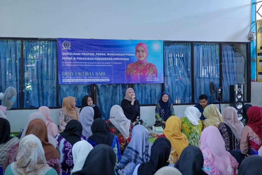 Sebelumnya, pada Minggu (5/4/2026), Desy juga melaksanakan sosialisasi Perda Nomor 11 Tahun 2019 tentang Pemberdayaan Perempuan dan Perlindungan Anak di Aula Rumah Pintar Kabupaten Hulu Sungai Selatan.