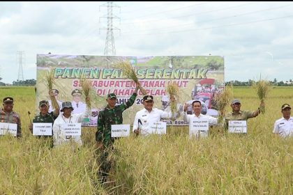 Panen Padi Serentak, Bupati Tala Menyerahkan Alsintan ke Brigade Pangan